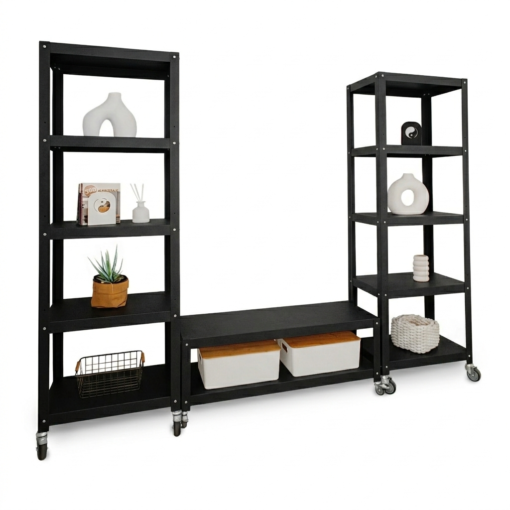 - Construcción Robusta: Con parantes de 1,6mm y estantes de 0,9mm, combina diseño moderno con durabilidad.