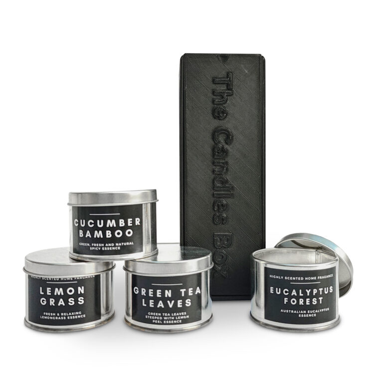 - 4 variedades cada una: La caja negra contiene aromas de Te Verde + Eucalipto + Lemongrass + Pepino Bamboo. La blanca Coco Vainilla + Lavanda Vainilla + Frutos Rojos + Magnolias Peonias