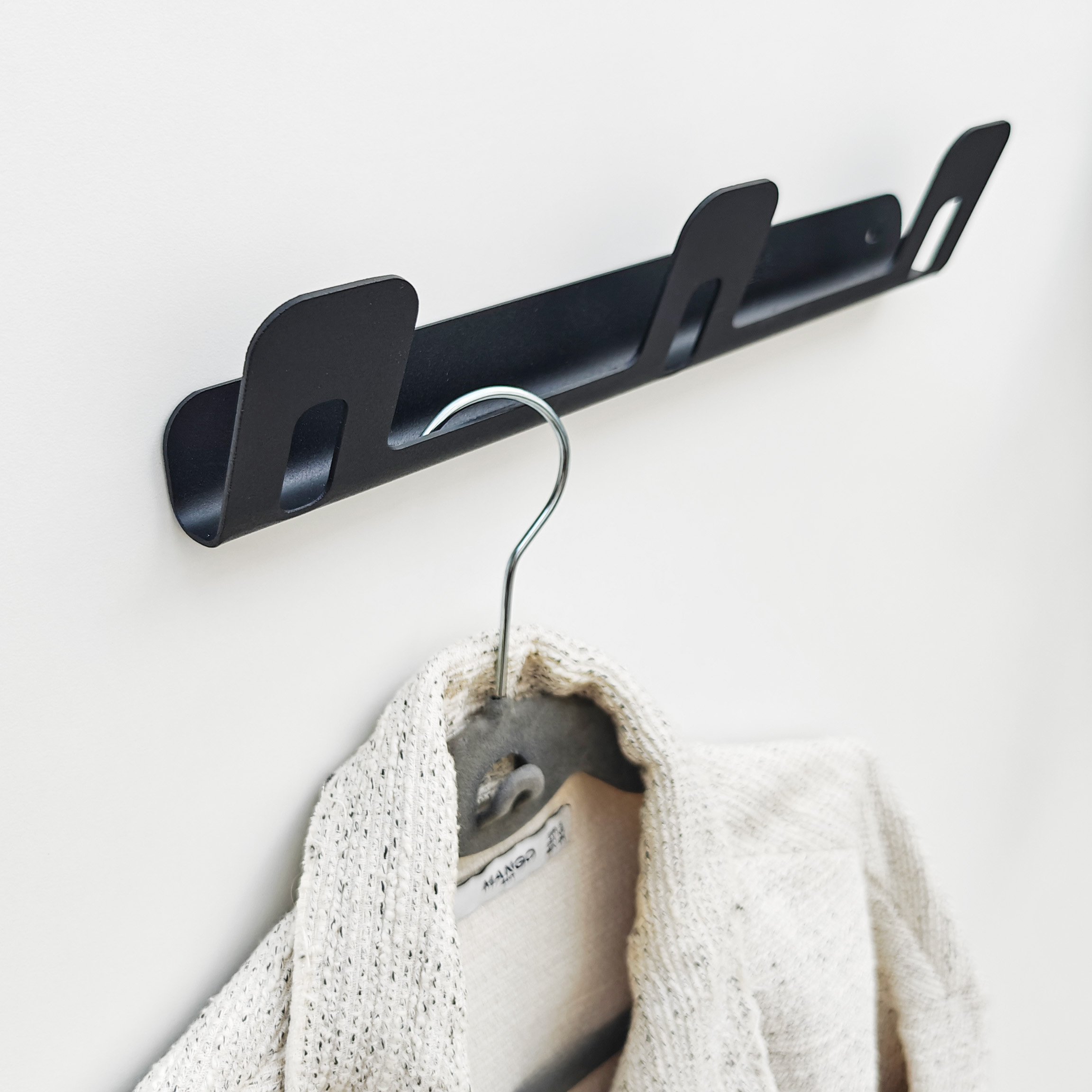 - Diseño optimizado: Su morfología permite colgar distintos tipos de prendas y accesorios con facilidad.