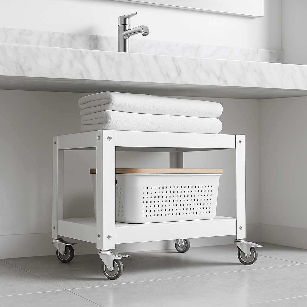 - Organización en el baño: ubicala bajo la mesada para guardar toallas o artículos de aseo.