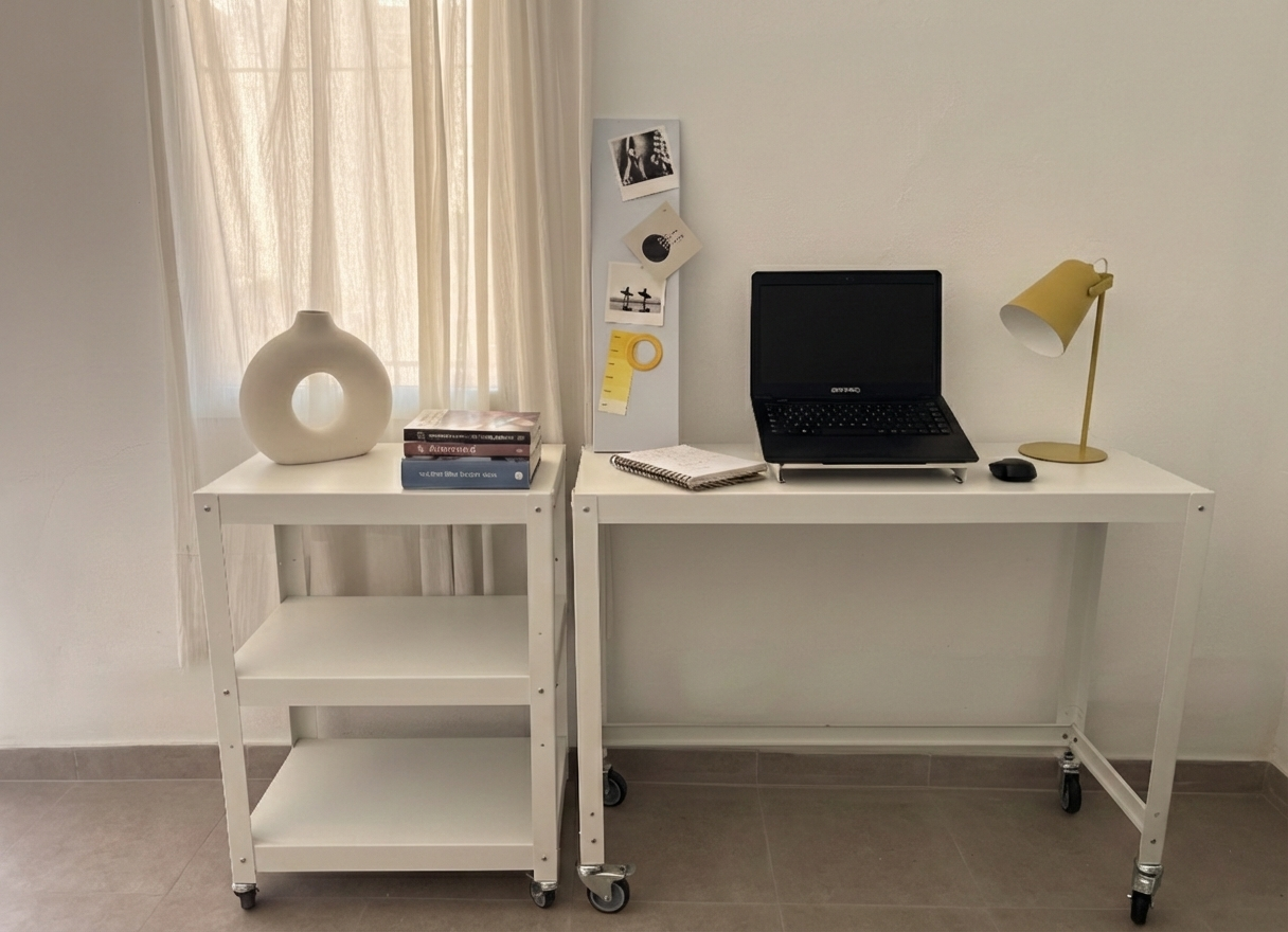 Formato pensado para espacios reducidos: Escritorio que aprovecha cada centímetro sin resignar comodidad.